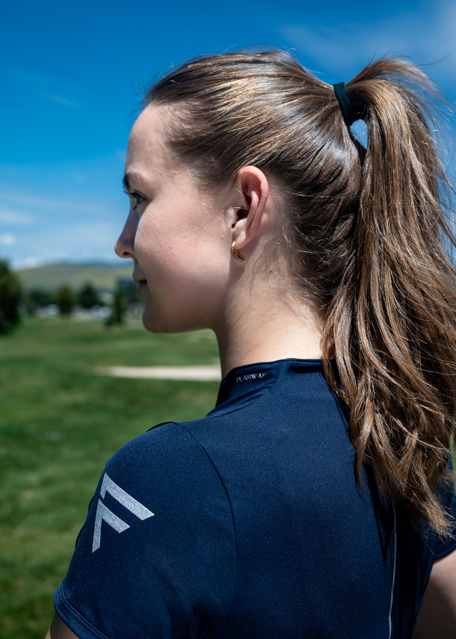 - Logo Flairway en silicona plateada ubicado en el brazo derecho.